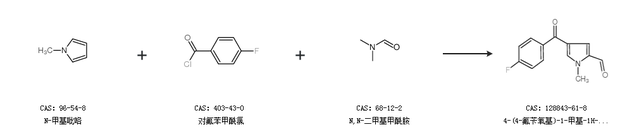 1.通过N-甲基吡咯、对氟苯甲酰氯和N,N-二甲基甲酰胺合成4-(4-氟苄氧基)-1-甲基-1H-吡咯-2-甲醛