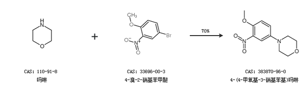 1.通过吗啉和4-溴-2-硝基苯甲醚合成4-(4-甲氧基-3-硝基苯基)吗啉,收率约70%;