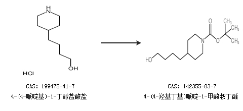 2.通过4-(4-哌啶基)-1-丁醇盐酸盐合成4-(4-羟基丁基)哌啶-1-甲酸叔丁酯
