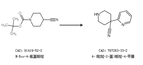 2.通过N-Boc-4-氰基哌啶合成4-(吡啶-2-基)哌啶-4-甲腈