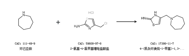 1.通过环己亚胺和2-氨基-4-氯甲基噻唑盐酸盐合成4-(氮杂环庚烷-1-甲基)-1,3-噻唑-2-胺