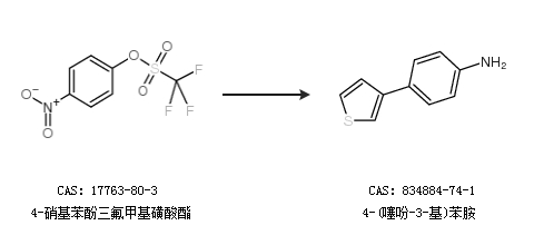 2.通过4-硝基苯酚三氟甲基磺酸酯合成4-(噻吩-3-基)苯胺