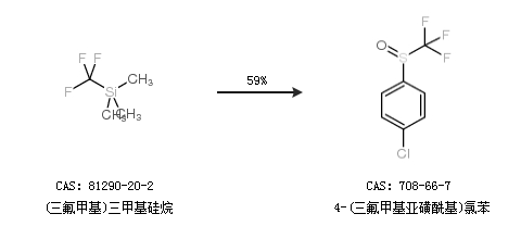 2.通过(三氟甲基)三甲基硅烷合成4-(三氟甲基亚磺酰基)氯苯,收率约59%;
