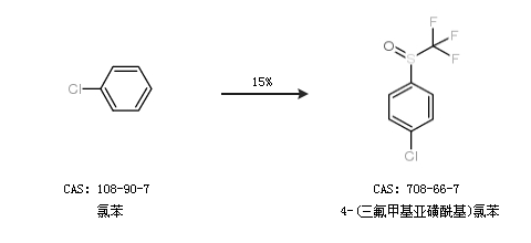 1.通过氯苯合成4-(三氟甲基亚磺酰基)氯苯,收率约15%;
