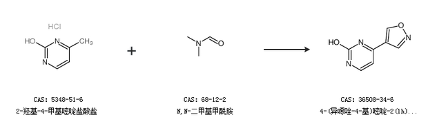 1.通过2-羟基-4-甲基嘧啶盐酸盐和N,N-二甲基甲酰胺合成4-(异噁唑-4-基)嘧啶-2(1h)-酮