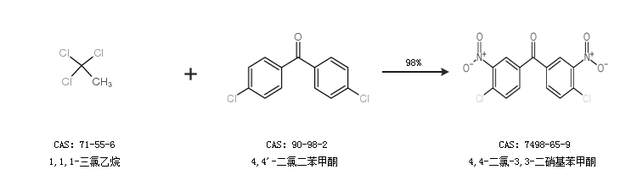 2.通过1,1,1-三氯乙烷和4,4''-二氯二苯甲酮合成4,4-二氯-3,3-二硝基苯甲酮,收率约98%;