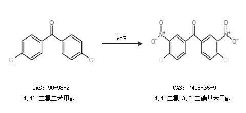 1.通过4,4''-二氯二苯甲酮合成4,4-二氯-3,3-二硝基苯甲酮,收率约98%;