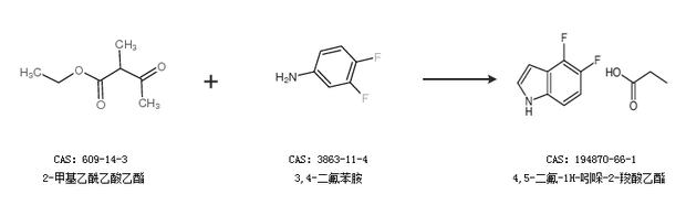 2.通过2-甲基乙酰乙酸乙酯和3,4-二氟苯胺合成4,5-二氟-1H-吲哚-2-羧酸乙酯