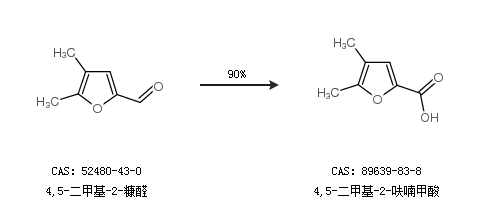 1.通过4,5-二甲基-2-糠醛合成4,5-二甲基-2-呋喃甲酸,收率约90%;