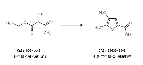 2.通过2-甲基乙酰乙酸乙酯合成4,5-二甲基-2-呋喃甲酸