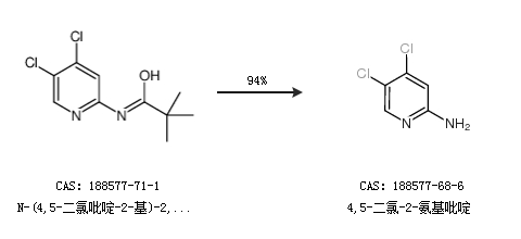 1.通过N-(4,5-二氯吡啶-2-基)-2,2-二甲基丙酰胺合成4,5-二氯-2-氨基吡啶,收率约94%;