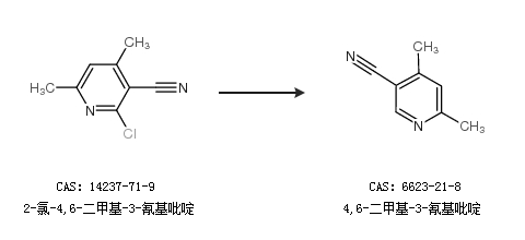 2.通过2-氯-4,6-二甲基-3-氰基吡啶合成4,6-二甲基-3-氰基吡啶
