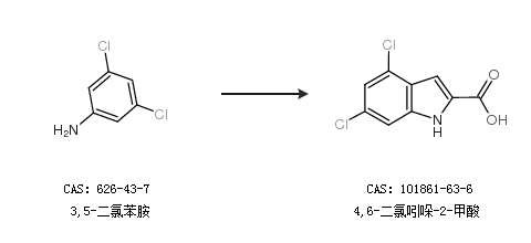 2.通过3,5-二氯苯胺合成4,6-二氯吲哚-2-甲酸