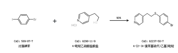 2.通过对溴碘苯和4-吡啶乙硫醇盐酸盐合成4-[2-(4-溴苯基硫代)乙基]吡啶,收率约90%;