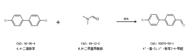 2.通过4,4-二溴联苯和N,N-二甲基甲酰胺合成4’-溴-[1,1’-联苯]-4-甲醛,收率约96%;