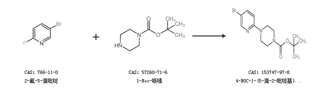 2.通过2-氟-5-溴吡啶和1-Boc-哌嗪合成4-BOC-1-(5-溴-2-吡啶基)哌嗪