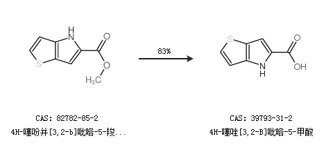 2.通过4H-噻吩并[3,2-b]吡咯-5-羧酸甲酯合成4H-噻唑[3,2-B]吡咯-5-甲酸,收率约83%;