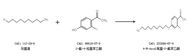 1.通过癸基溴和2-氟-4-羟基苯乙酮合成4-N-decyl氧基-2-氟苯乙酮
