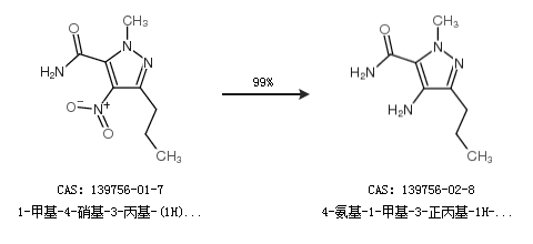 1.通过1-甲基-4-硝基-3-丙基-(1H)-吡唑-5-甲酰胺合成4-氨基-1-甲基-3-正丙基-1H-吡唑-5-羧酰胺,收率约99%;