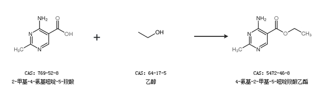 2.通过2-甲基-4-氨基嘧啶-5-羧酸和乙醇合成4-氨基-2-甲基-5-嘧啶羧酸乙酯