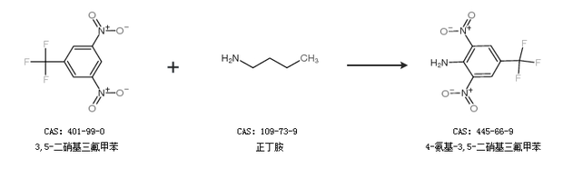 1.通过3,5-二硝基三氟甲苯和正丁胺合成4-氨基-3,5-二硝基三氟甲苯