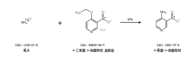 2.通过氨水和4-乙氧基-3-硝基吡啶.盐酸盐合成4-氨基-3-硝基吡啶,收率约87%;