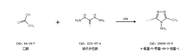 1.通过乙酸和硫代卡巴肼合成4-氨基-5-甲基-4H-3-巯基-1,2,4-三唑,收率约10%;