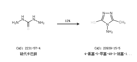2.通过硫代卡巴肼合成4-氨基-5-甲基-4H-3-巯基-1,2,4-三唑,收率约12%;