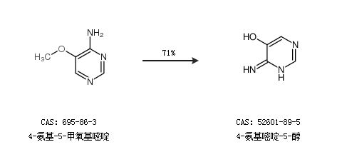 1.通过4-氨基-5-甲氧基嘧啶合成4-氨基嘧啶-5-醇,收率约71%;