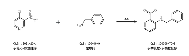 1.通过4-氯-3-硝基吡啶和苯甲胺合成4-苄氨基-3-硝基吡啶,收率约95%;