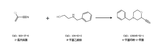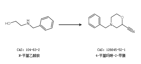 1.通过N-苄基乙醇胺合成4-苄基吗啉-2-甲腈