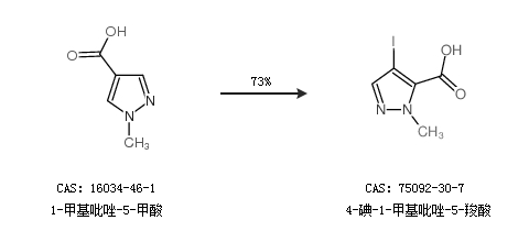 1.通过1-甲基吡唑-5-甲酸合成4-碘-1-甲基吡唑-5-羧酸,收率约73%;