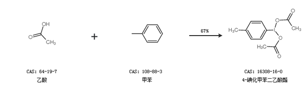 2.通过乙酸和甲苯合成4-碘化甲苯二乙酸酯,收率约67%;