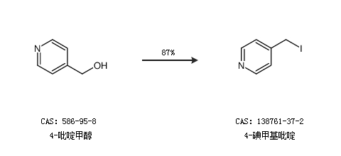 1.通过4-吡啶甲醇合成4-碘甲基吡啶,收率约87%;