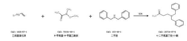 2.通过乙烯基溴化镁、N-甲氧基-N-甲基乙酰胺和二苄胺合成4-二苄氨基丁烷-2-酮,收率约60%;