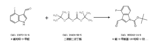 1.通过4-氟吲哚-3-甲醛和二碳酸二叔丁酯合成4-氟-3-甲酰基-1H-吲哚-1-羧酸叔丁酯