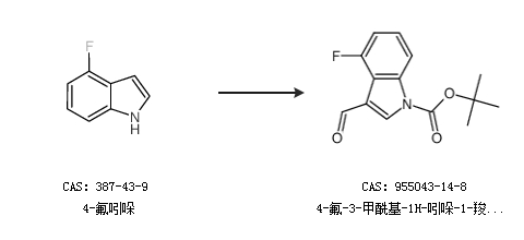 2.通过4-氟吲哚合成4-氟-3-甲酰基-1H-吲哚-1-羧酸叔丁酯