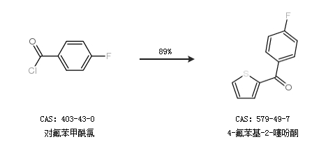 1.通过对氟苯甲酰氯合成4-氟苯基-2-噻吩酮,收率约89%;