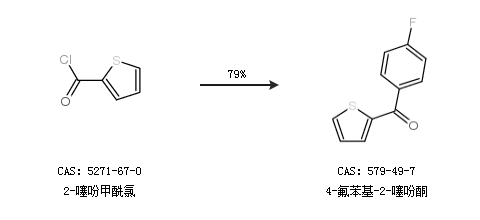 2.通过2-噻吩甲酰氯合成4-氟苯基-2-噻吩酮,收率约79%;