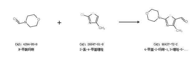 1.通过N-甲酰吗啉和2-氯-4-甲基噻唑合成4-甲基-2-吗啉-1,3-噻唑-5-甲醛