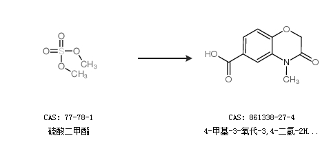 1.通过硫酸二甲酯合成4-甲基-3-氧代-3,4-二氢-2H-苯并[1,4]噁嗪-6-羧酸