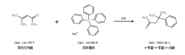 2.通过异丙叉丙酮和四苯硼钠合成4-甲基-4-苯基-2-戊酮,收率约37%;