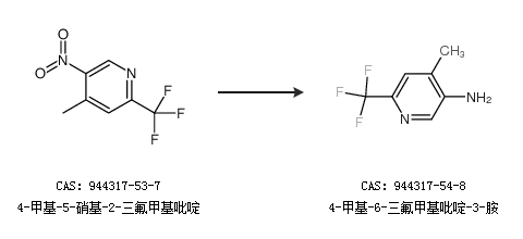 1.通过4-甲基-5-硝基-2-三氟甲基吡啶合成4-甲基-6-三氟甲基吡啶-3-胺