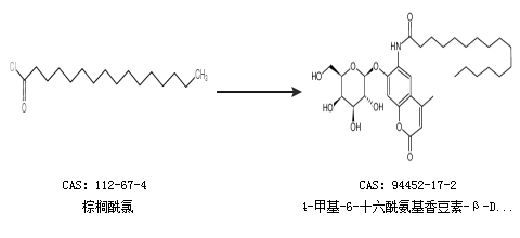 2.通过棕榈酰氯合成4-甲基-6-十六酰氨基香豆素-β-D-吡喃半乳糖苷