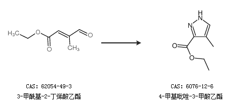 1.通过3-甲酰基-2-丁烯酸乙酯合成4-甲基吡唑-3-甲酸乙酯