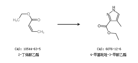 2.通过2-丁烯酸乙酯合成4-甲基吡唑-3-甲酸乙酯