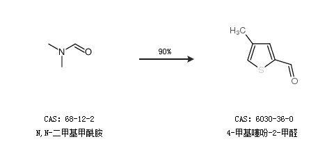 2.通过N,N-二甲基甲酰胺合成4-甲基噻吩-2-甲醛,收率约90%;