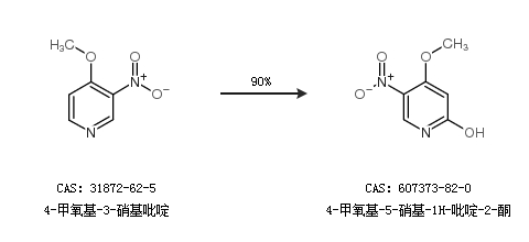 1.通过4-甲氧基-3-硝基吡啶合成4-甲氧基-5-硝基-1H-吡啶-2-酮,收率约90%;