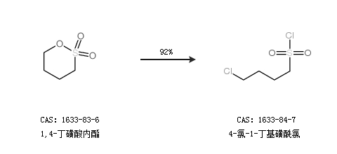 1.通过1,4-丁磺酸内酯合成4-氯-1-丁基磺酰氯,收率约92%;