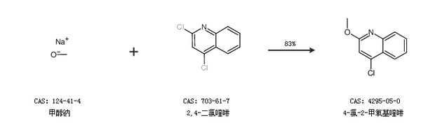 2.通过甲醇钠和2,4-二氯喹啉合成4-氯-2-甲氧基喹啉,收率约83%;